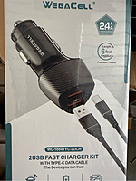 WEGACELL CAR CHARGER + TYPE C CABLE WL-1604TYC-2DCH