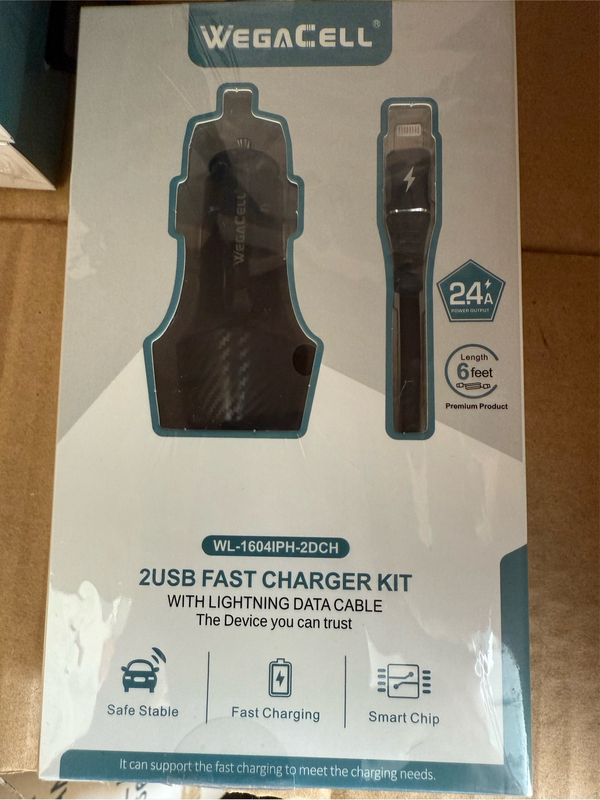 WEGACELL CAR CHARGER IPH CABLE WL1604IPH-2DCH