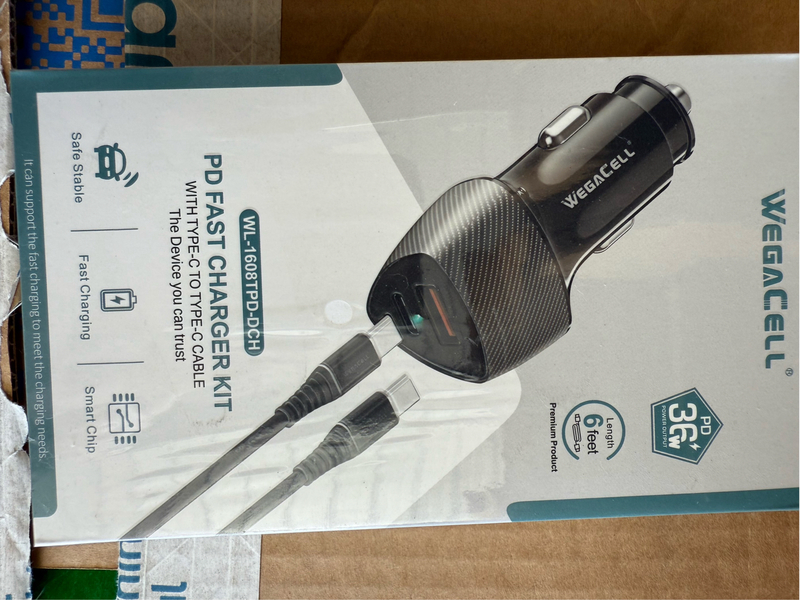 WEGACELL CAR CHARGER + C to C CABLE WL-1608TPD-DCH