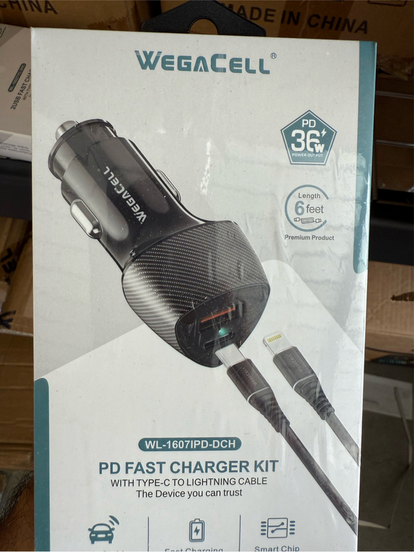 WEGACELL 6 FT TYPE C TO IPHONE CABLE W CAR CHARGER