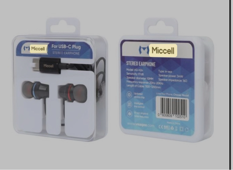 MICCELL PREMIUM QUALITY TYPE C EARPHONE WL-71EPHC - 100 PCS BUNDLE