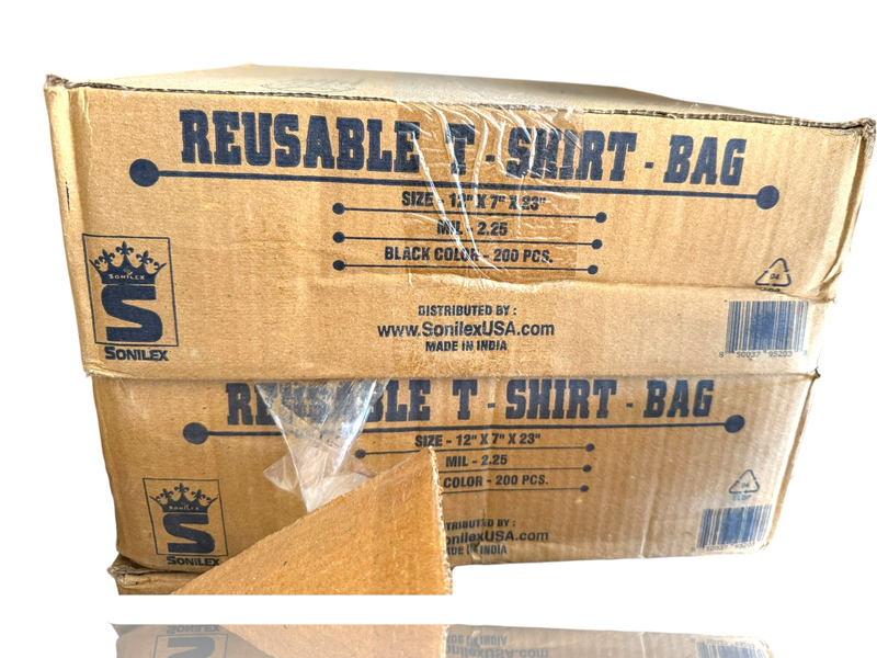 BLACK REUSABLE TSHIRT BAG-12”7”23”