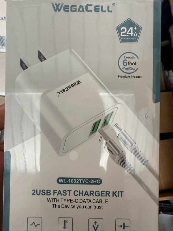 WEGACELL 6 FT TYPE C CABLE W HOME CHARGER