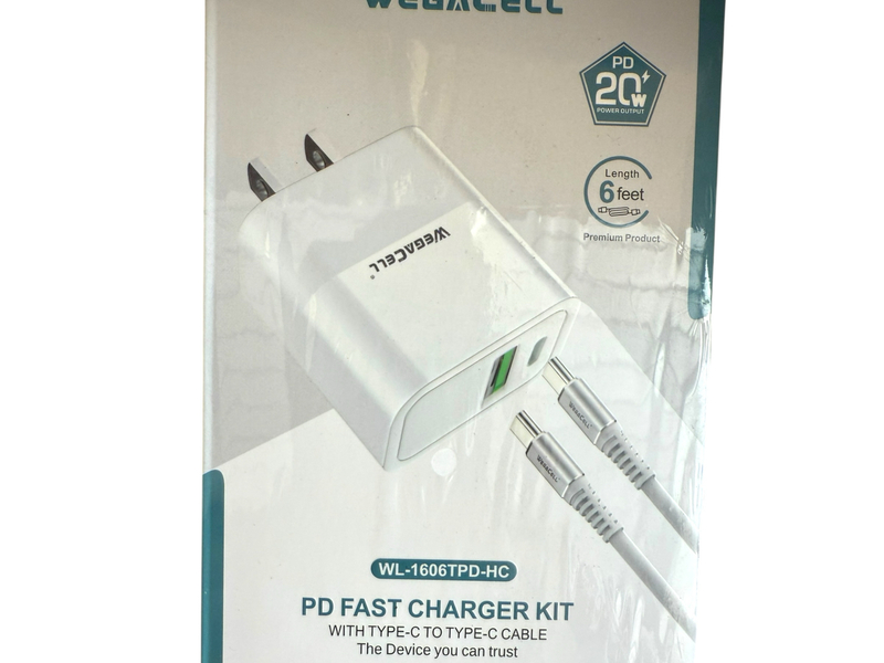 WEGACELL 6 FT TYPE C TO TYPE C CABLE W HOME CHARGER